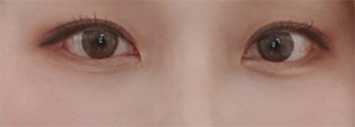 元々目の下に脂肪がなく、涙袋の溝が深いため、メイクをしないと目の下がとてもやつれて見え、メイクをしてもコンシーラーを厚塗りしてやっと隠れる状態でした。また、目の後ろ側が少し上がっていて、横幅が短い目だったので、目の下脂肪再配置、目尻切開、グラマラスライン形成(下眼瞼下制術)を行いました。