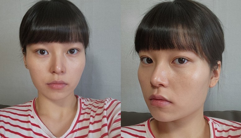 顔がとても갸름(갸름:갸름하다 is a Korean word meaning slim and oval-shaped)で自然にきれいになった気がして驚いています。