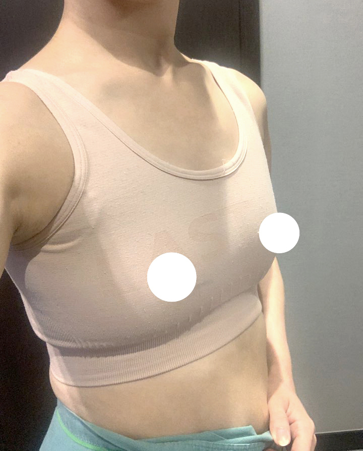 胸の垂れもなく、ハリがあり、乳頭の位置も良い位置にあると経過観察の際に仰っていました(笑)。胸が大きくなったからといって不便に感じることもなく、バレエをする際にも全く邪魔にならないので良かったです!