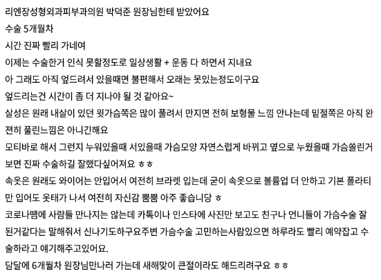 リエンジャン美容外科医院 ★★★★★ 5.0 [강남언니] 가슴성형(모티바) / 5개월차/ 닉네임:Regina0 匿***@ | 2022.01.11 | 31 리엔장성형외과에서 수술 받은 후 강남언니에 업로드한 실제 후기입니다. 수술항목: 가슴성형(모티바 / 왼355cc, 오375cc) 口コミ一覧に戻る