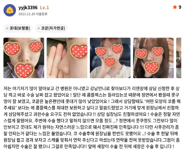 リエンジャン美容外科医院 ★★★★★ 5.0 [강남언니] 코성형 / 1개월차 / 닉네임 : yyjk3396 匿***@ | 2022.03.15 | 32 口コミ一覧に戻る