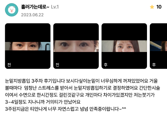 リエンジャン美容外科医院 ★★★★★ 5.0 [강남언니] 눈밑지방이식 / 3주차 / 닉네임 : 흘러가는데로~ 匿***@ | 2023.06.22 | 29 口コミ一覧に戻る
