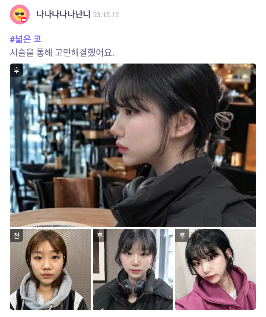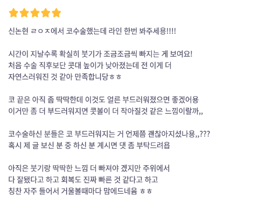 リエンジャン美容外科医院 ★★★★★ 5.0 [바비톡] 코성형 / 1개월차 / 닉네임 : 나나나나나난니 匿***@ | 2024.06.05 | 38 口コミ一覧に戻る