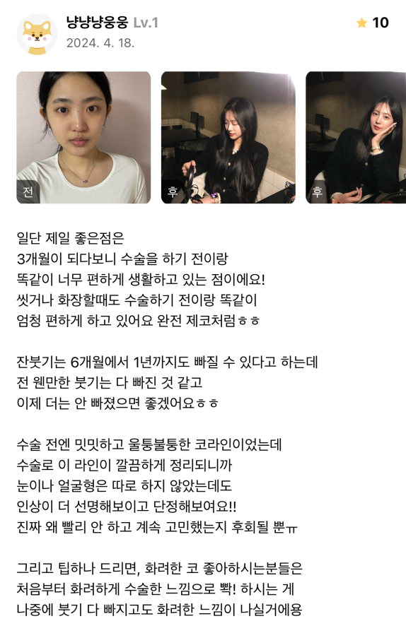 [강남언니] 코성형 / 3개월차 / 닉네임:냥냥냥웅웅