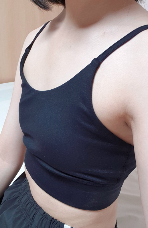 傷跡も今は軟膏をしっかり塗って 꾸준히(コツコツ)管理しているので、シワのように見えますし、腕を上げるのも全く問題なく 잘(ちゃんと)上げられます。時間が経って、もう自分の胸のようで、人工的な感じもなく、手術したという感じよりは、自分の体のラインに合ったボリューム感のある体になったようで、とても嬉しいです(笑)。